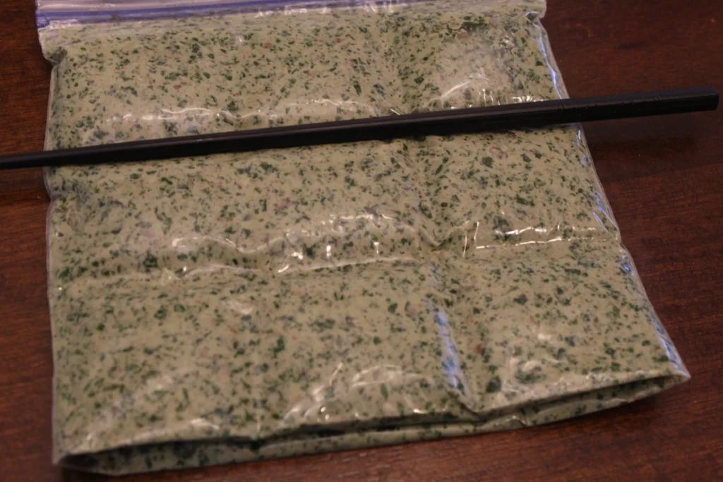 Carefully transfer the bag into the freezer on a flat surface until it is completely frozen. To use, break off your desired amount and either thaw in the refrigerator overnight, on the counter for an hour, or in the microwave for 30 seconds.